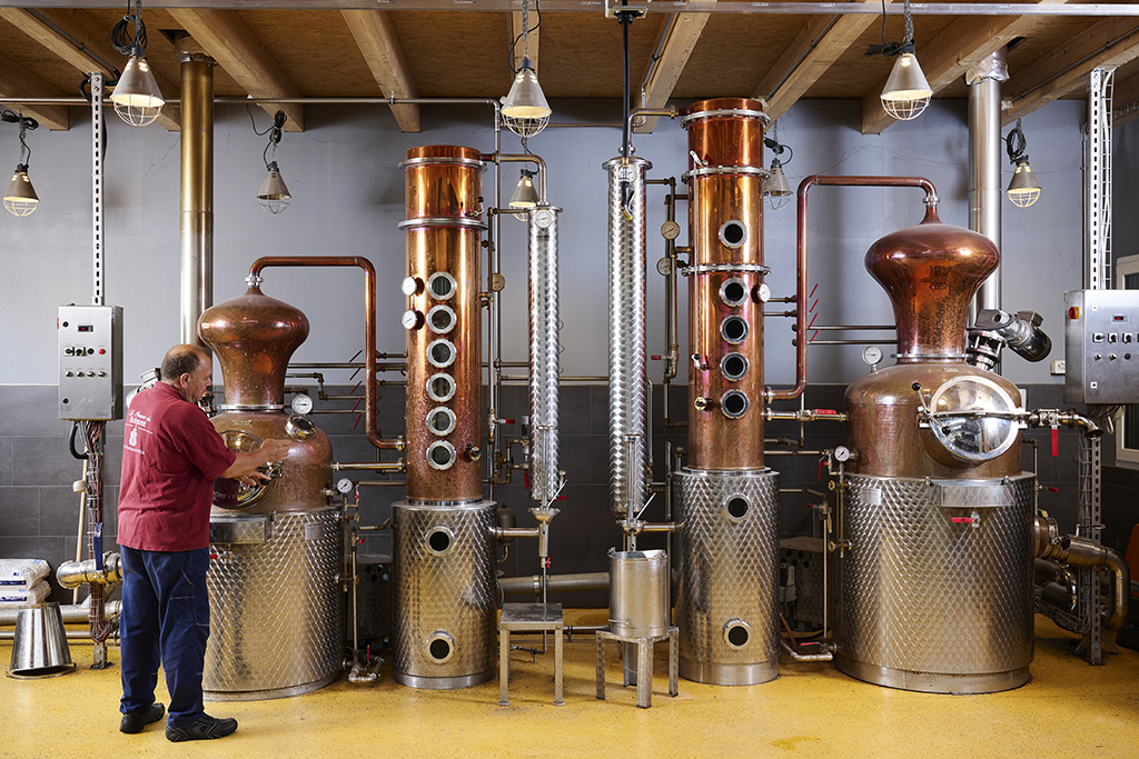 De la mise en fermentation des fruits, traitement des trempes, entreposage, jusqu’à la distillation … (vous trouverez tous les détails ainsi que nos prix à la page Distillerie)